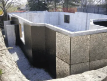 continuous thermal barrier between the home and the surrounding ground. This insulation not only stabilizes indoor temperatures but also seals air gaps and minimizes energy loss at the foundation level. Layered over this, Mar-flex 5000 delivers a high-performance waterproofing membrane that protects the structure—and the insulation itself—from moisture intrusion, freeze/thaw damage, and long-term degradation.